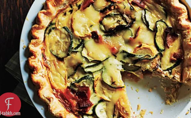 الصيف الاسكواش ، لحم الخنزير المقدد ، وجبن موزاريلا كيشي