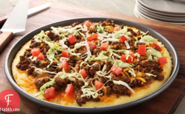 إعداد الذرة الكعك الخليط وفقا لتوجيهات على الحزمة ؛ تنتشر على الجزء السفلي من عموم البيتزا 12 بوصة رش مع رذاذ الطبخ.