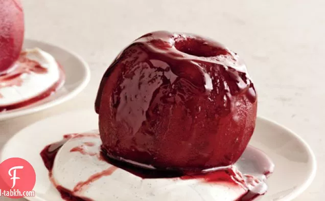 باستخدام ملعقة فترة زمنية محددة ، ونقل التفاحإلى طبق وتوضع جانبا. سلالة الصيدالسائل في مقلاة في قدر صغير ، وتجاهل المواد الصلبة في مصفاة. تعيين قدر علىمتوسطة - حرارة عالية ويترك على نار خفيفة ، ويحركفي بعض الأحيان ، حتى الصيد الجائر السائل شرابوخفض إلى حوالي 3/4 كوب ، 10-15 دقيقة (شراب سوف رشاقته كما يبرد).