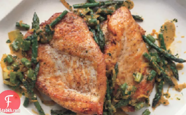 شرحات دجاج سوتي أوسد مع الهليون والبصل الأخضر والبقدونس-الطرخون جريمولاتا