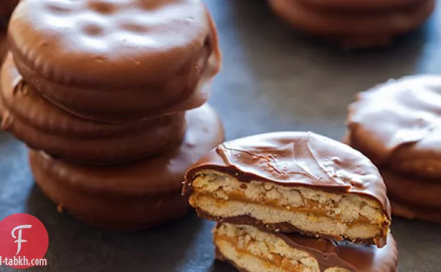 شطائر ريتز بزبدة الفول السوداني المغطاة بالشوكولاتة