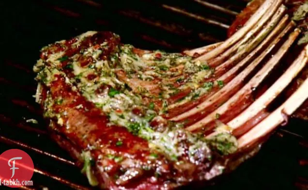 اشوي رفوف لحم الضأن ، بحيث يكون جانب اللحم لأسفل ، لمدة 3 دقائق تقريبا على الجانب الأول. اقلب ، ثم اترك الشواية الجانبية الثانية لمدة 5 دقائق إجمالا ، لنضج متوسط نادر. طهي لفترة أطول قليلا للمتوسط. (انظر ملاحظة كوك)