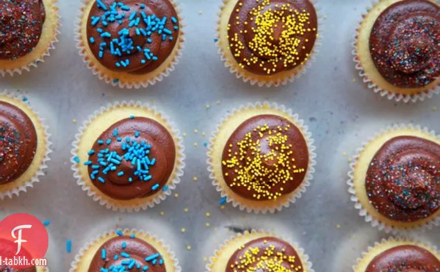 كب كيك الفانيليا مع كريمة الزبدة بالشوكولاتة