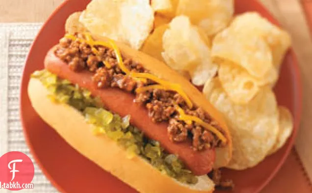 ضعي الهوت دوج في طنجرة طهي بطيئة سعة 3 لتر، ثم ضعي فوقها خليط اللحم البقري. غطيها واتركيها على نار هادئة لمدة 4-5 ساعات أو حتى تسخن تمامًا.