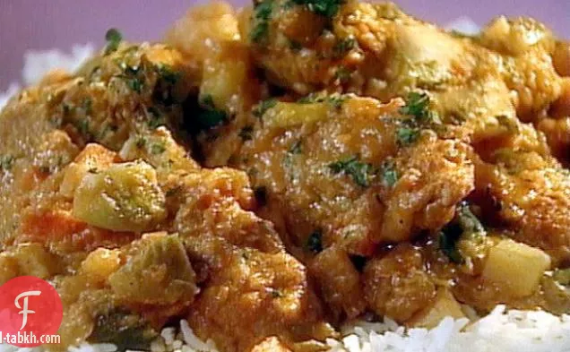 يخنة الدجاج والخضروات في صلصة الطماطم بزبدة الفول السوداني: مافي