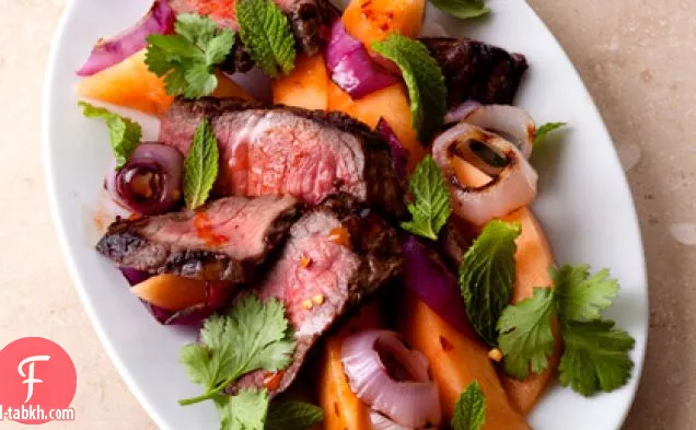 البطيخ وشريحة لحم مع صلصة الفلفل الحلو المدخن