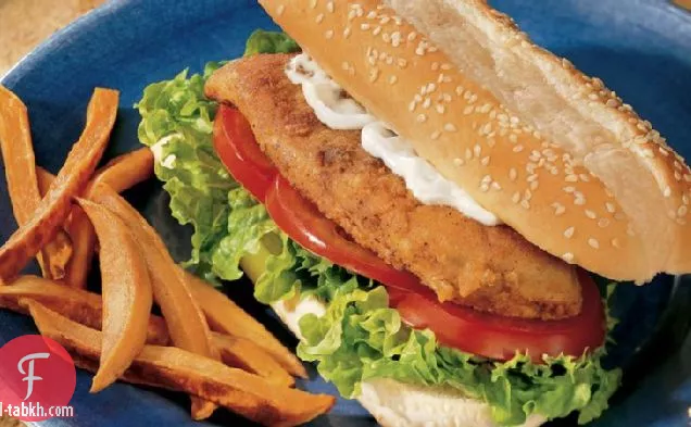 ضع الماء في طبق ضحل آخر. يغمس الدجاج في الماء ، ثم يغطى بمزيج الحبوب.