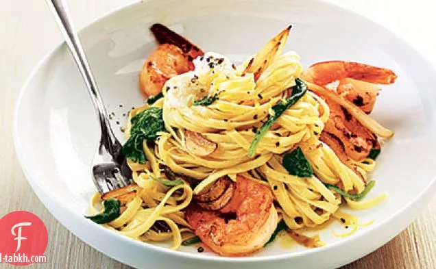 الروبيان ينجويني مع الريكوتا والشمر والسبانخ