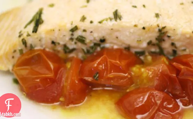 الفرنسية في ومضة: سمك السلمون مع الطماطم الصيفية وإكليل الجبل أون بابيلوت