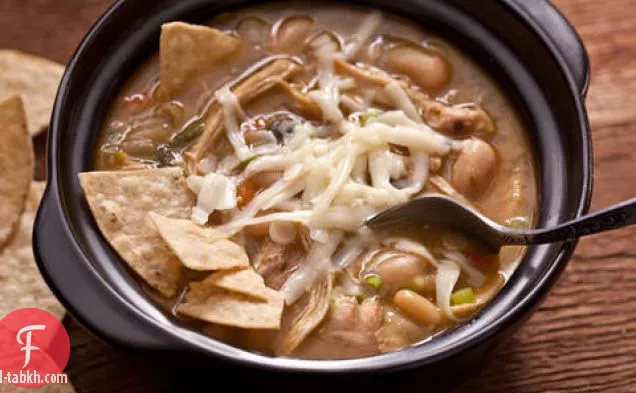 انزع الدجاج إلى لوح التقطيع. عندما يكون باردا بما فيه الكفاية للتعامل معها ، وإزالة اللحوم ووضعه جانبا (تجاهل الجلد والعظام).باستخدام هراسة البطاطس ، اهرسي حوالي نصف الفاصوليا والخضروات قليلا ، واتركي النصف المتبقي سليما. ضجة في الدجاج المبشور وعصير الليمون.