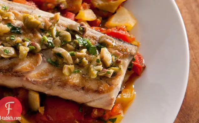 الماكريل المشوي مع الطماطم والشمر والكبر