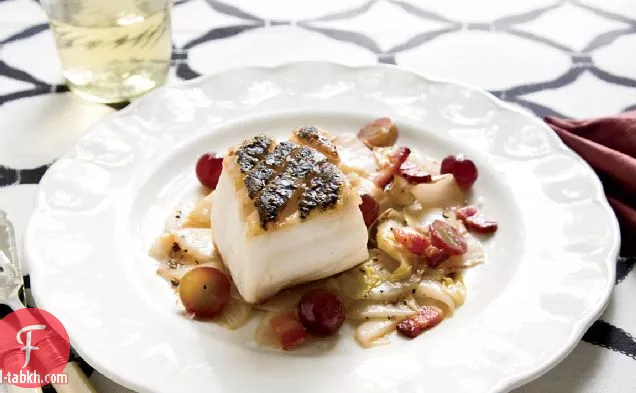 باس البحر الأسود المحمر مع الهندباء والعنب