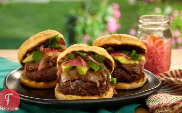 برجر أواكساكا مع المانشيجو والأفوكادو والبصل الهابانيرو المخلل