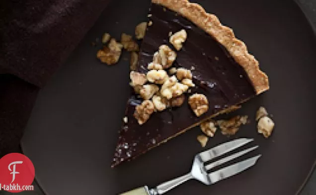تارت الشوكولاتة بالكراميل والجوز (خالي من الغلوتين ، خالي من الحبوب ، نباتي)