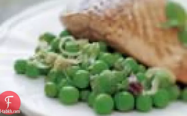 دمس سريع من البازلاء الربيع مع براعم البصل الأحمر