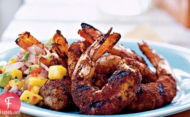 رعشة الروبيان مع البصل المشوي, أفوكادو, والمانجو السالسا