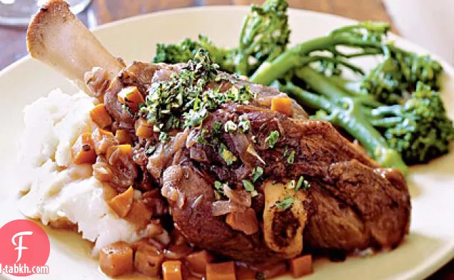ساق خروف مطهو ببطء مع البقدونس-جريمولاتا بالنعناع