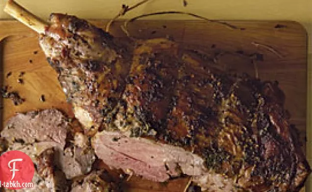 ساق لحم الضأن المشوي ببطء مع النعناع والليمون