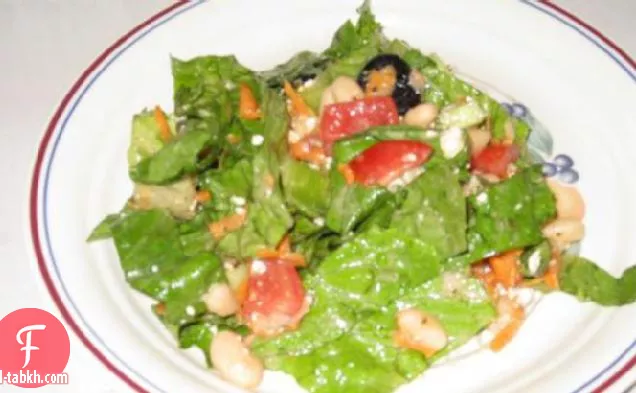 سلطة يونانية كبيرة الدسم مع فاصوليا بيضاء وزيتون كالاماتا وفيتا