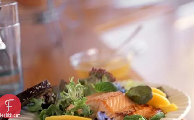 سمك السلمون على الخضر مع خلع الملابس الجير والزنجبيل