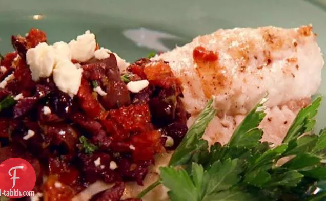 سمك السلور المشوي مع نكهة الزيتون والطماطم