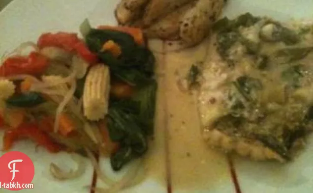 سمك مخبوز بجوز الهند والليمون والفلفل الحار مع أسافين البطاطس التايلاندية