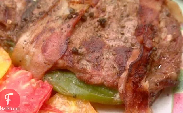 شرائح الفلفل الأخضر المشوي-شرائح الفلفل المحشوة ملفوفة في لحم الخنزير المقدد