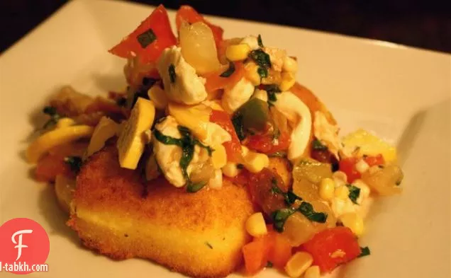 شرائح اللحم البارميزان عصيدة من دقيق الذرة مع الإرث الطماطم-سلطة الذرة وكري