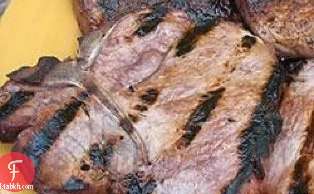 استنزاف القطع وتجاهل محلول ملحي. إذا رغبت في ذلك ، افركي جانبي القطع بمسحوق أنشو تشيلي. شواء 10 دقائق ؛ بدوره وشواء 4-6 دقائق أكثر أو حتى درجة الحرارة الداخلية 140 درجة فهرنهايت.