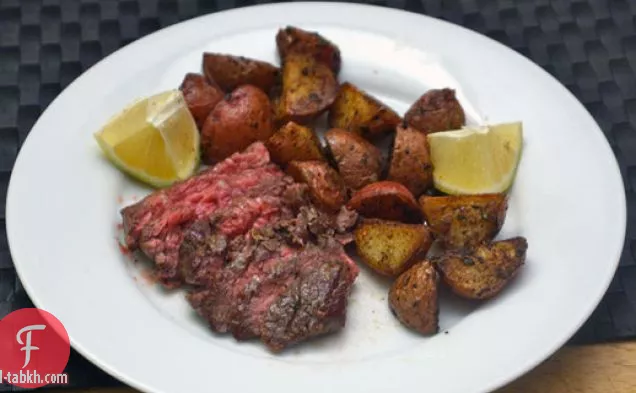 شريحة لحم تنورة مع البطاطا المحمصة والليمون
