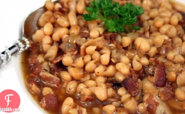 شوربة الفاصوليا البحرية ولحم الخنزير المقدد