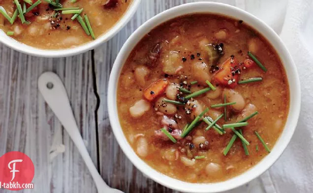 شوربة الفاصوليا البيضاء الكريمية مع لحم الخنزير المدخن