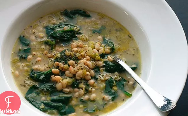 شوربة الفاصوليا البيضاء والسبانخ مع إكليل الجبل والثوم (نباتي)