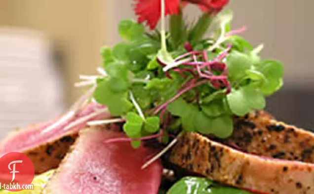 عموم محروق أهي التونة ، البنجر الطفل وسلطة الجرجير مع صلصة الخل والزنجبيل