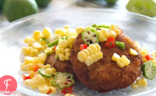 كعك السلطعون الأزرق مع الذرة النيئة والبامية وسكوتاش الليمون الرئيسي