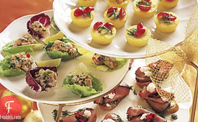 لحم بقري مشوي وجرجير كروستيني مع نكهة الفلفل الأحمر والزيتون